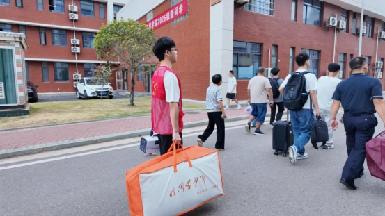 “同学,行李我来帮你扛!”在各校区迎新点,身穿红色志愿服的志愿者们成为最动人的风景。他们不惧烈日,主动接过新生手中沉甸甸的行李箱,穿梭在校园的报到点与宿舍区之间;或守候在路口,耐心指引路线、讲解报到流程;或留守在报到处,细致协助材料核验与整理。汗水浸湿衣衫,笑容却始终明亮,志愿者们用行动覆盖新生报到全流程,让“商院大家庭”的温暖触手可及。