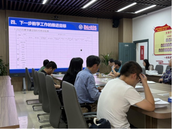 在教研教改领域取得的成果。她指出,上半年学院在教改项目、教学竞赛、教学获奖、专业建设、课程建设、教材出版等方面成绩显著,并发布了《2025年教学建设指标任务明细表》。该表预以量化指标明确各专业在课程优化、师资培训、产教融合等维度的建设目标。针对教学过程中存在的商科专业建设、教学团队建设及学科交叉融合等痛点问题,谭赛提出“三步走”改进方案:一是建立行业需求动态监测机制,及时更新人才培养方案;二是加强教师队伍建设,针对不同层次的专业教师水平,给予不同程度的扶持;三是鼓励学生积极参与学院组织的学科交叉活动。