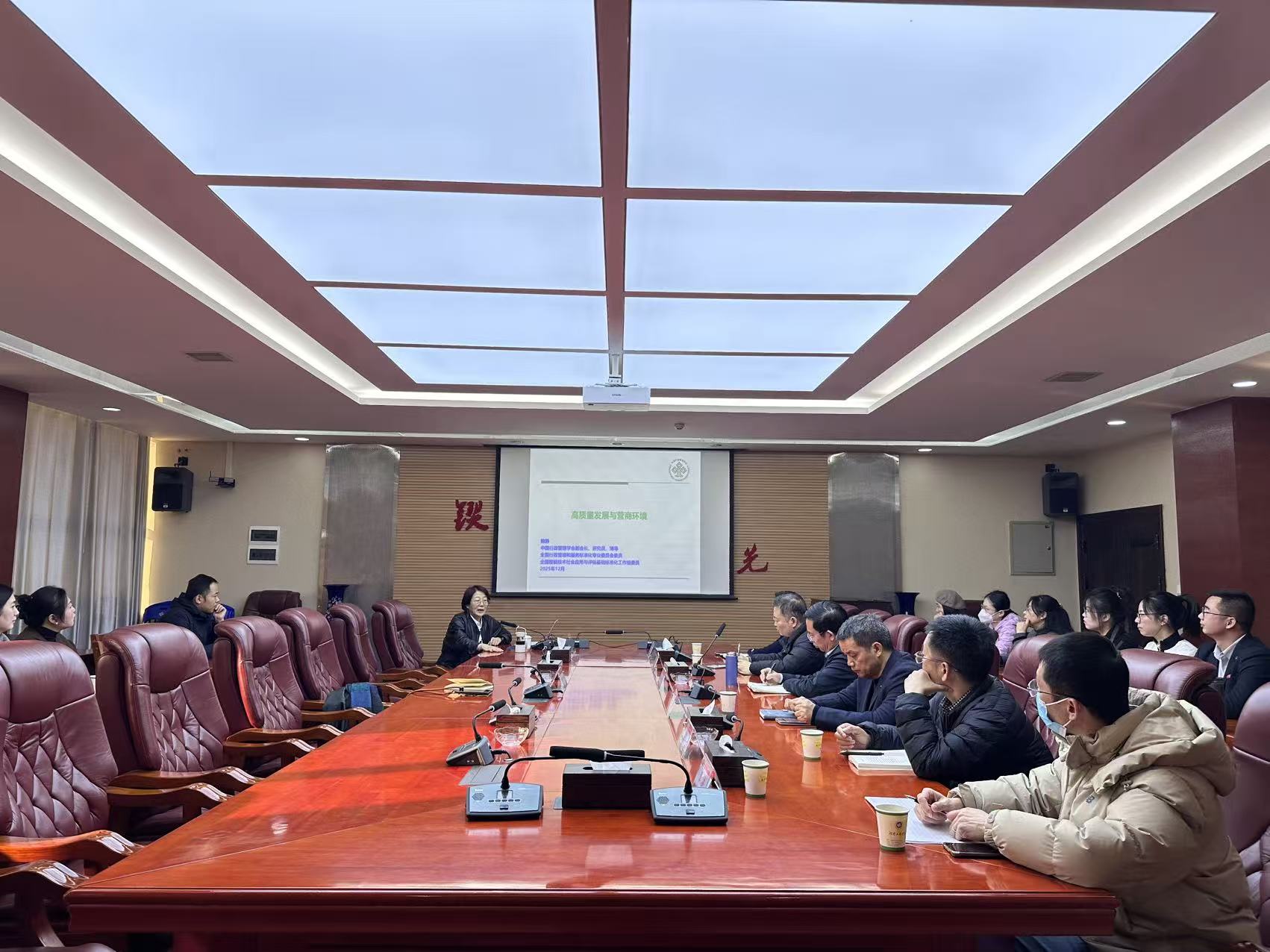 报告会上,鲍静研究员紧密结合其在中国行政管理学会的深厚研究积淀,从系统阐释了高质量发展作为中国式现代化首要任务的内涵与要求。她重点围绕质量治理现代化、信息化赋能、城镇化协同与标准化战略四大维度,深刻论述了打造市场化、法治化、国际化一流营商环境的核心要义与实践路径。