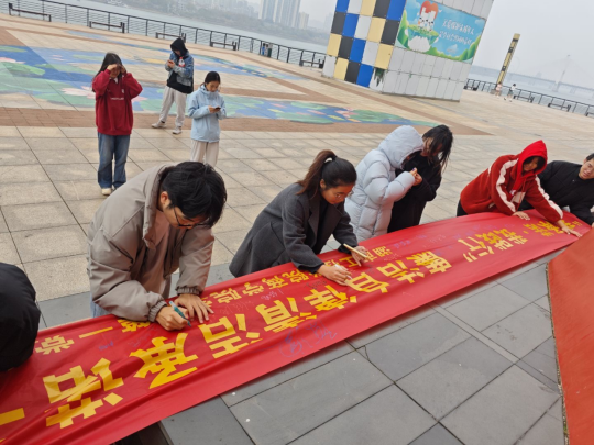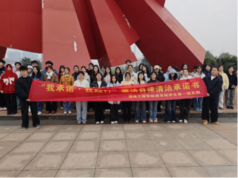 学生第一党支部在湘江风光带隆重开展“我承诺 我践行”廉洁自律签名活动。全体学生党员及入党积极分子共 50 余人参加此次活动。