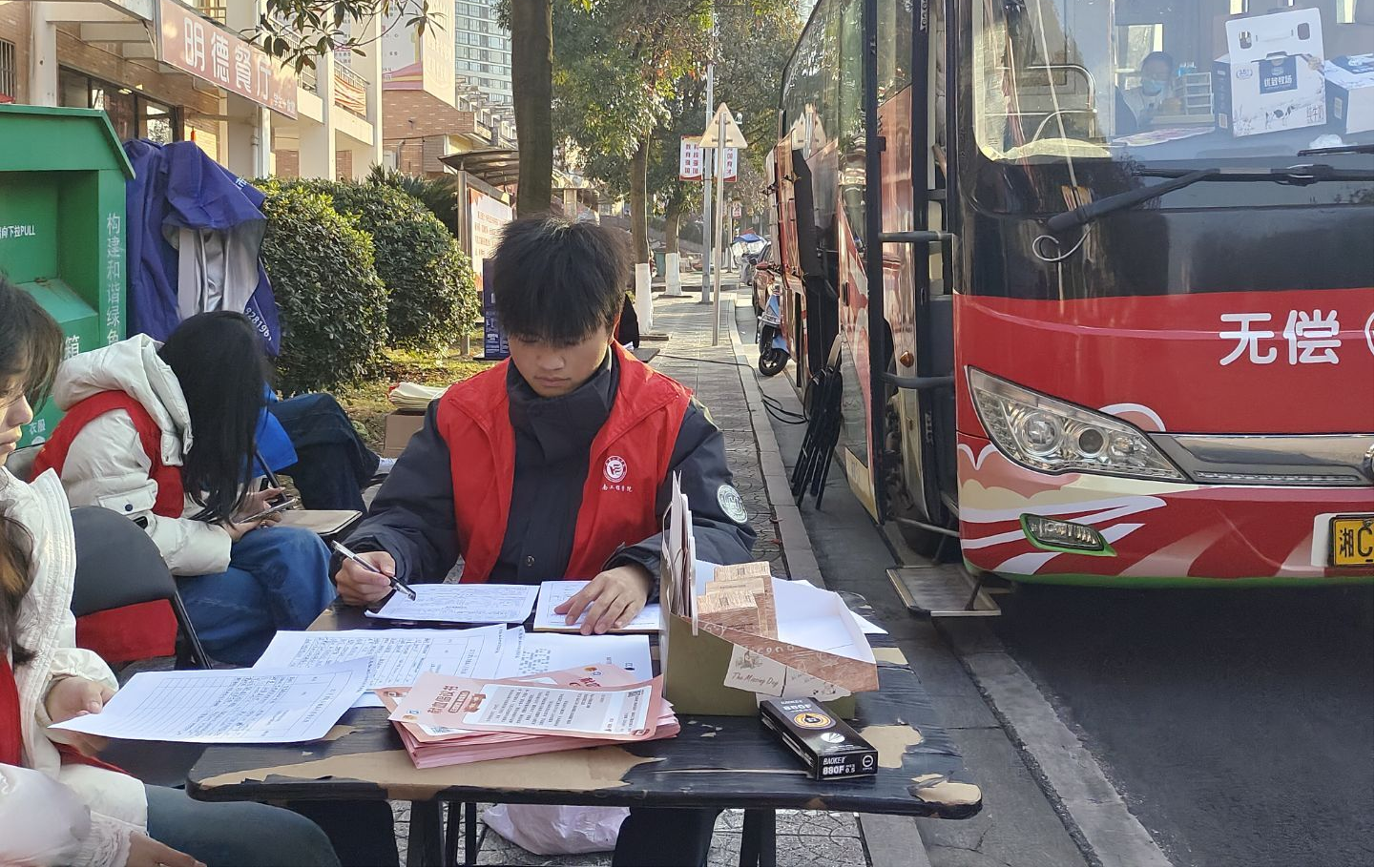 学生联合组织青年志愿者中心积极响应,组织蓝丝带联盟志愿者投身服务,在明德二食堂前的献血点,为参与献血的师生提供全流程引导与暖心照料,以实际行动为校园爱心事业注入青春动能。