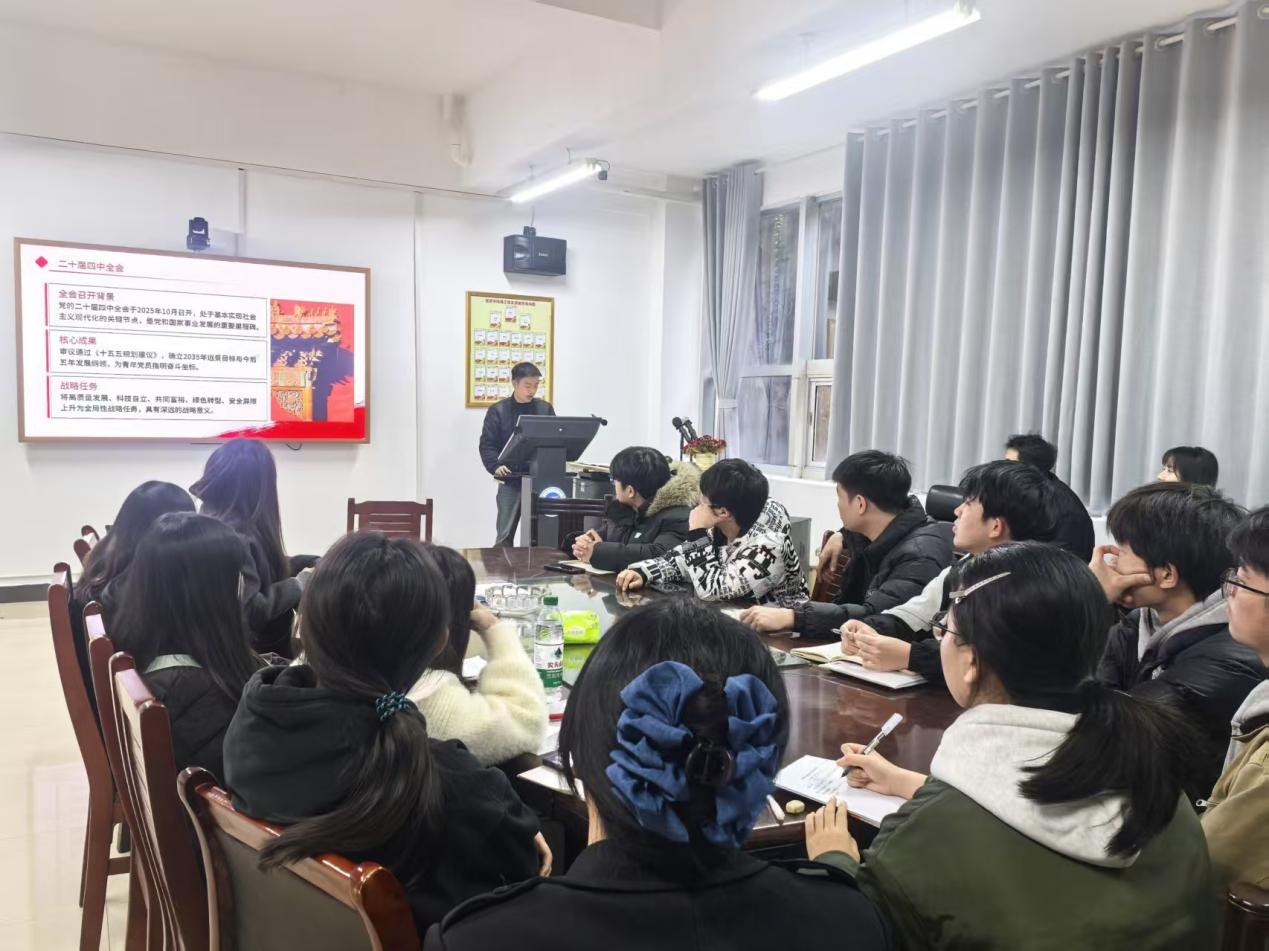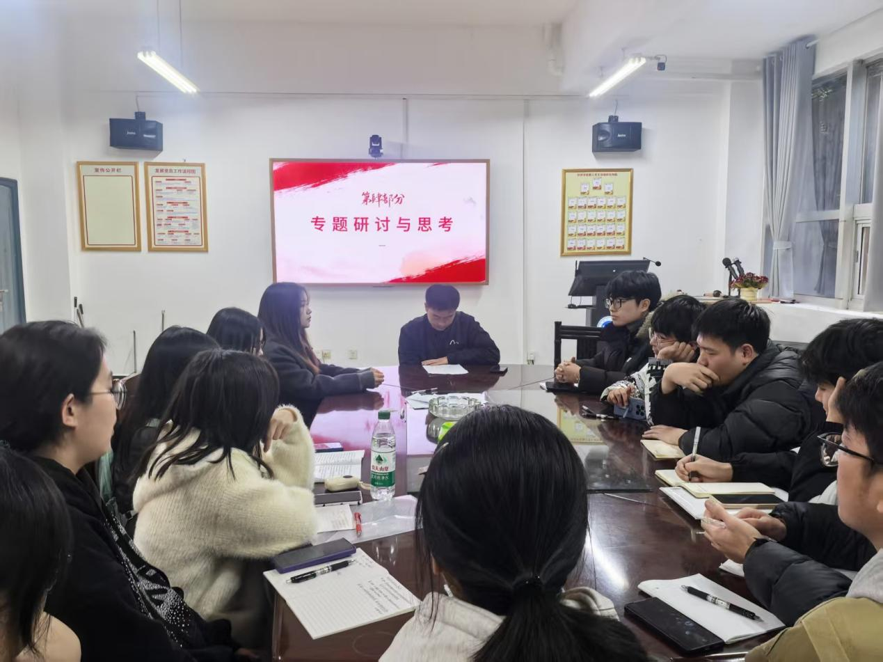学生第四党支部于G-115开展以“深学笃行新思想,实践担当建新功”为主题开展专题党课,支部全体党员参与学习,在理论研学与实践研讨中凝聚奋进力量。