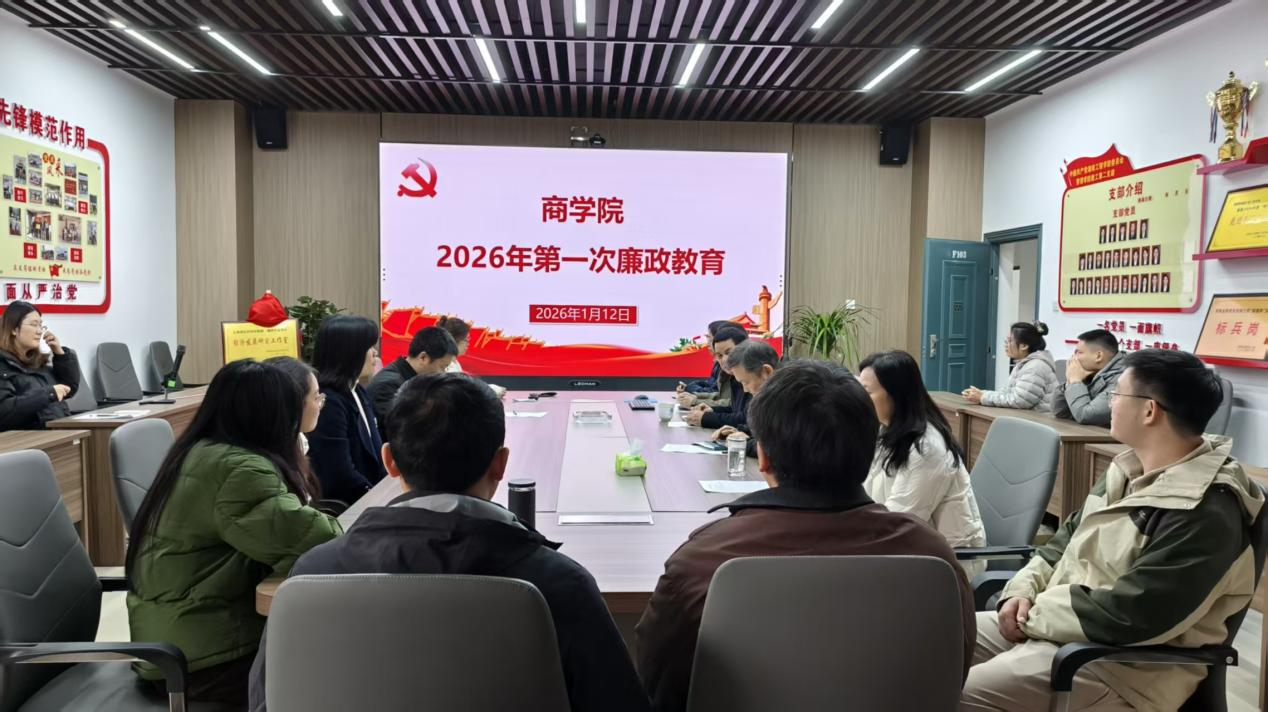 在F103会议室组织召开2026年第一次廉政教育专题学习会。学院党委书记徐运保主持会议,副院长(主持行政工作)潘立军、学院领导班子成员、学工办公室与科研办公室主任以及各基层党支部书记共同参加学习。