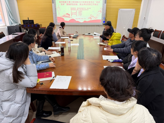 教工第二党支部在F104会议室召开了2025年度支部书记“双述双评”暨组织生活会、民主评议党员工作会议。会议由党支部书记刘喜梅主持,支部全体党员参加会议。