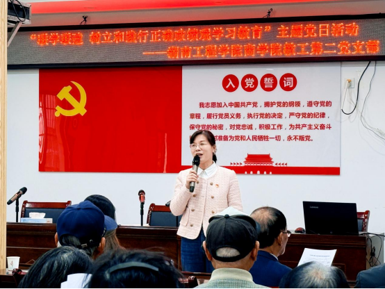 教工第二党支部,走进湘潭市岳塘区宝塔街道盘龙社区,开展树立和践行正确政绩观专题党课宣讲。社区党员、教工支部党员及大学生志愿者60余人参加了此次联学活动。