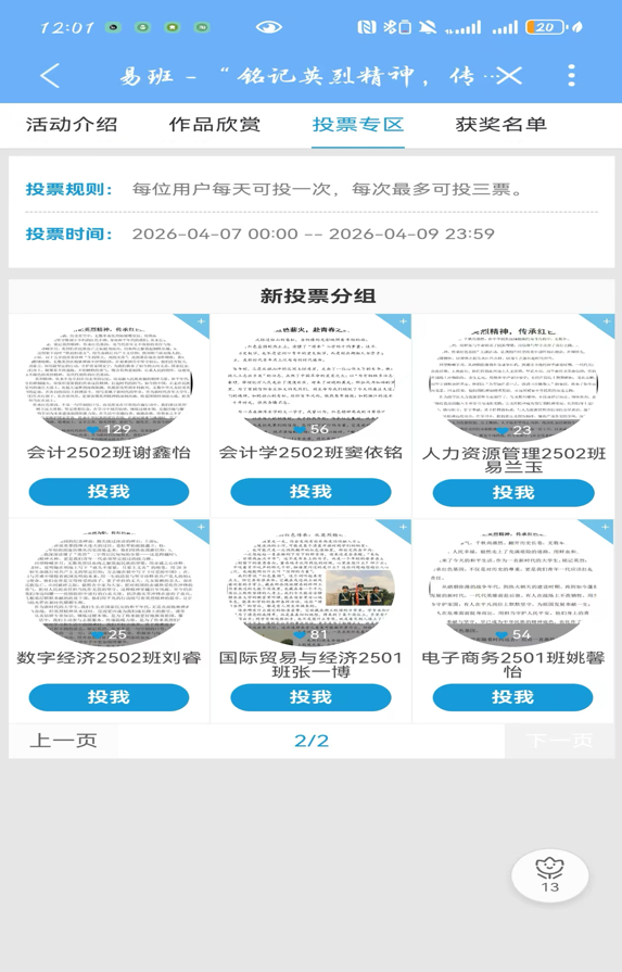 “铭记英烈精神,传承红色基因”寻迹践悟主题活动优秀作品欣赏及投票界面